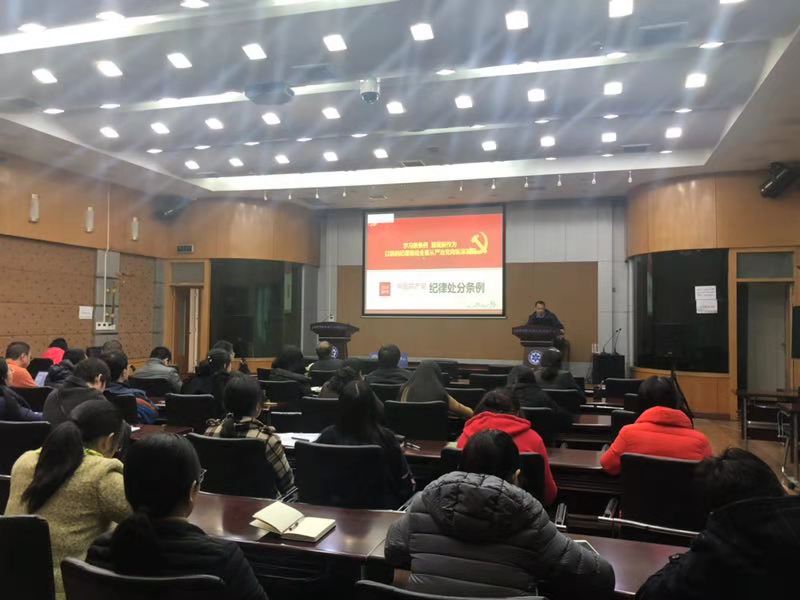 房俊民作题为《学习新条例,展现新作为,以铁的纪律推动全面从严治党向纵深发展》主题报告,报告从“中国共产党纪律处分条例”修订前后对照分析,详细解读了《条例》相关内容。报告强调党的纪律建设必须以习近平新时代中国特色社会主义思想为指导、坚决维护以习近平同志为核心的党中央权威和集中统一领导;必须牢固树立政治意识、大局意识、核心意识、看齐意识;要在实践中普遍运用监督执行“四种形态”等内容。