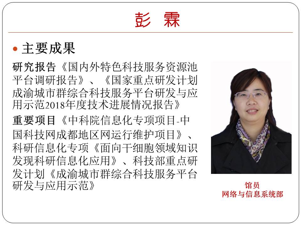 2018年度优秀个人 来源: 综合处 发布时间: 2019年02月01日 2018年,中心在深入学习贯彻习近平新时代中国特色社会主义思想和党的十九大精神,紧密围绕中国科学院“率先行动”计划,取得了良好成效。为表彰先进,激励职工的工作积极性,评选张娟等10人为2018年度成都文献情报中心优秀个人,希望受表彰的个人珍惜荣誉,发挥表率作用,为推动我中心各项工作再上新台阶作出更大的贡献。同时号召中心全体职工向受表彰的个人学习,积极做好本职工作,为建设科技智库贡献更大力量。 分享: 上一条:成都文献情报中心第二党支部开展“讲爱国奉献、当时代先锋”主题学习活动 下一条:成都文献情报中心举行离退休职工迎新春联欢会