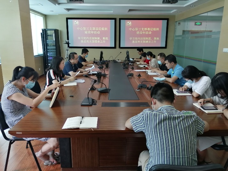 第三党支部书记田雅娟首先就本次学习的意义进行了讲解,明确了本次学习讨论的主要内容。然后由中心党委委员肖国华领读领学了《中国共产党党和国家机关基层组织工作条例》、《中国共产党支部工作条例(试行)》等党内法规制度,并结合工作实际谈了自己学习的体会,鼓励大家依据条例要求,贯彻落实好党中央决策部署,做好本职工作,建功新时代、争创新业绩。随后,党员们积极分享了本次学习心得,同时,也对前期自行学习的《中国共产党章程》、《关于新形势下党内政治生活的若干准则》等党内法规制度的学习体会进行了探讨和交流。