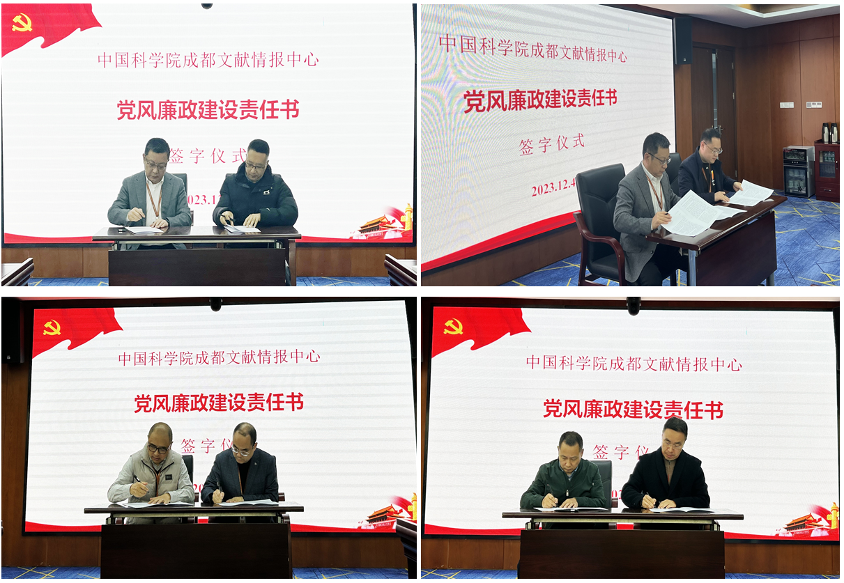 12月4日,为深入贯彻落实新时代全面从严治党要求,扎实推进中心党风廉政建设工作,成都文献情报中心举行2023年度党风廉政建设责任书签字仪式,中心领导班子和中层干部共20余人参加了仪式。