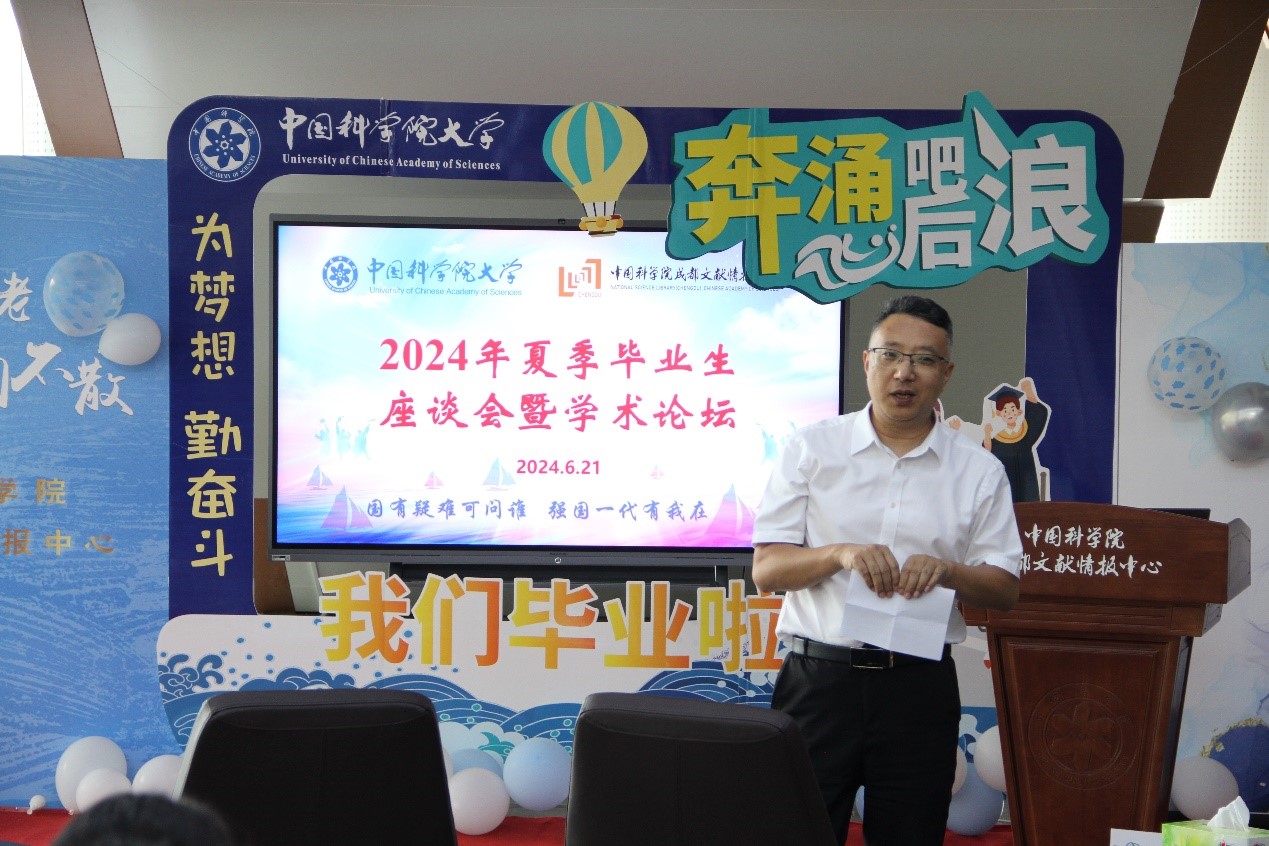 此次活动不仅为毕业生提供了一个展示学术成果、交流学习心得的平台,也为他们即将踏入社会、开启新的人生阶段送上了温暖的祝福和期许。成都文献情报中心将继续关注毕业生的成长和发展,提供更多的支持和帮助。同时,中心也将继续深化科教融合,加强学术研究和人才培养工作,为全面支撑抢占科技制高点和科技自立自强建设贡献力量。