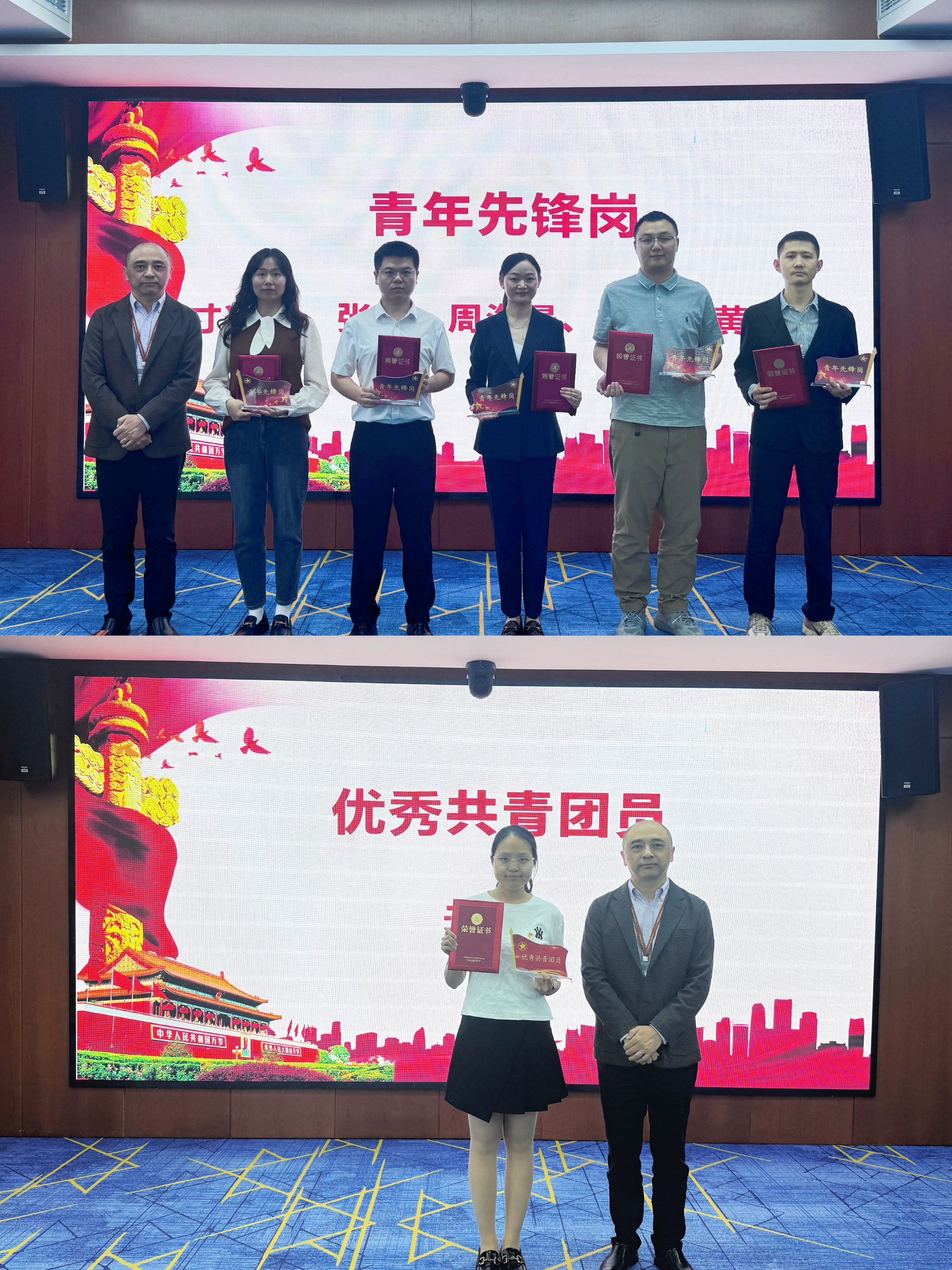 在表彰环节,文奕宣读了《关于表彰2025年“青年先锋岗”和“优秀共青团员”的通知》,对在科研攻关、服务创新中表现突出的团员青年予以表彰。随后,邓勇为获得荣誉称号的6名优秀团员青年颁奖。三位获奖代表作了发言。战略情报部副研究员寸兴利以科研报国为初心,结合工作实践,强调利用人工智能做好情报支撑的重要性;创新研究部助理研究员周海晨用“望远镜与显微镜”“冷数据与热脉搏”“小坐标与大棋局”三组关键词,讲述了自己作为一名科技情报“尖兵”,积极做好科技战略洞察与服务决策的工作感悟;博士研究生于诗睿立足新时代青年视角,以多名青年典型事迹诠释五四精神传承,表达争当先锋模范的决心。