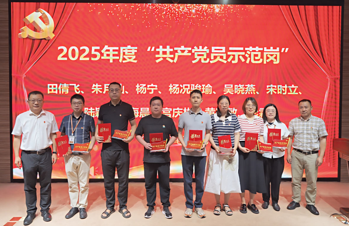 ????会上,曲建升和中心副主任房俊民为田倩飞等获得“共产党员示范岗”的党员授牌。