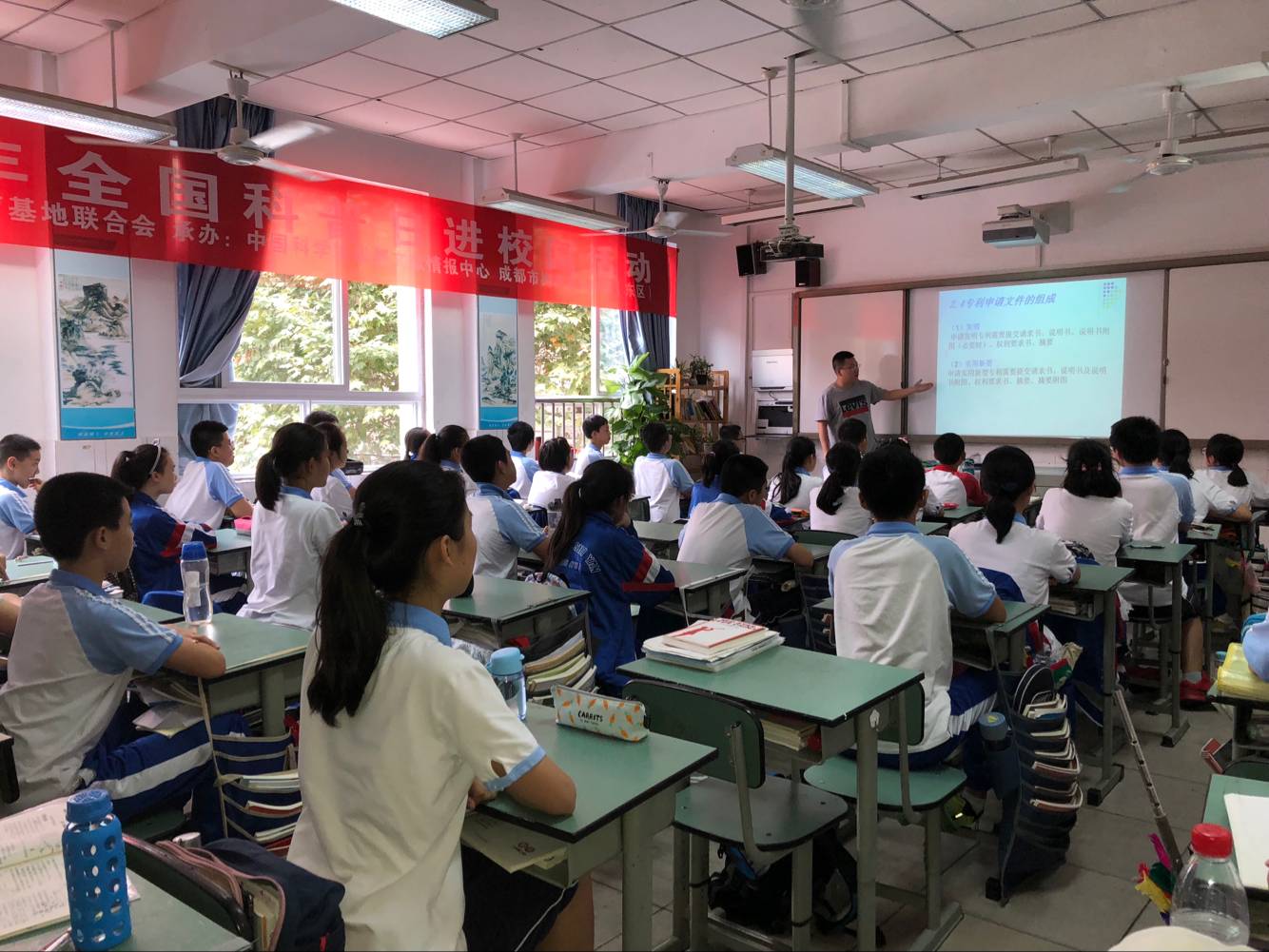 9月18日中科院成都文献情报中心作为成都市科普教育基地联合会“共享中创新体验中成长——全国科普日走进校园”活动的协办单位,为成都市树德实验中学(东区)八年级科创班的百余名学子带来了两场深入浅出的科教课程- “玩转信息检索”和“专利基础知识”。通过中心科普工作者的课程教学,学生们学习到信息检索工具、检索基本知识技巧,以及专利基本特征、种类、申请方法和常见误区等??翁蒙希怪傅佳窍殖〗惺导?,教学氛围活泼轻松,学生兴趣浓厚,教学效果得到学校领导和老师好评。