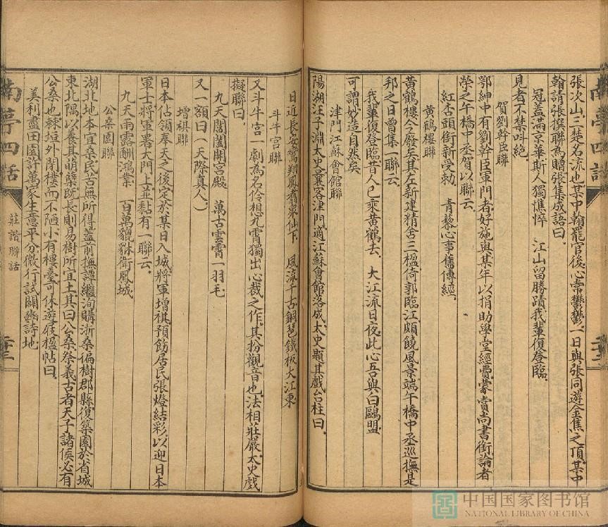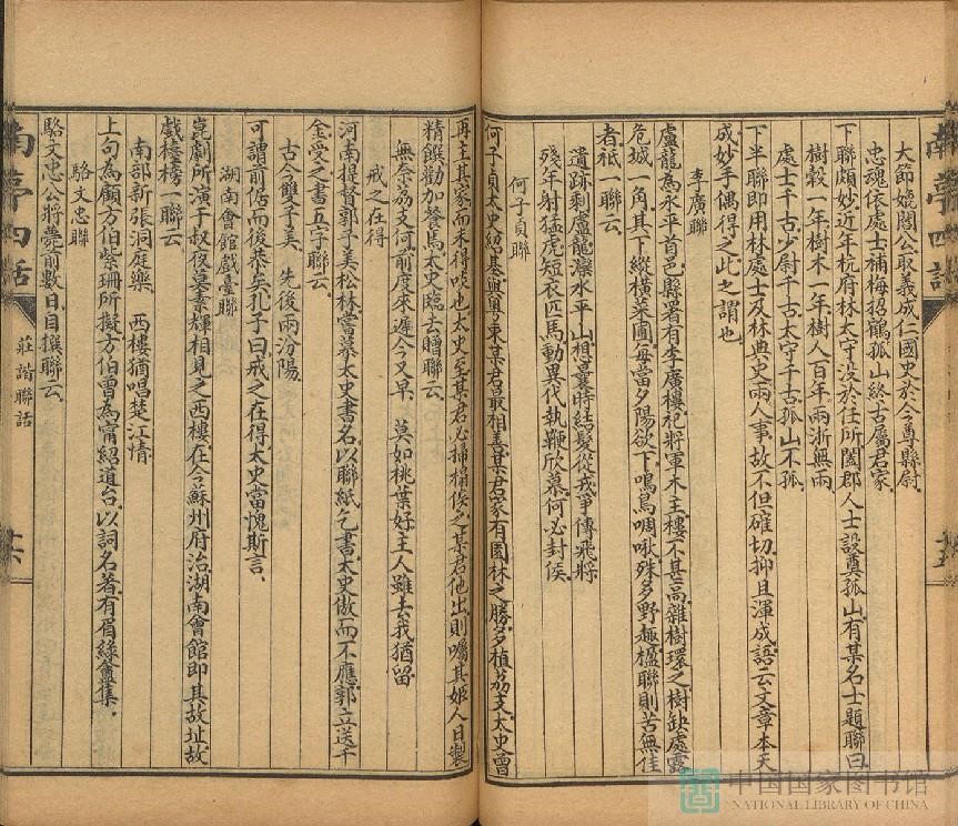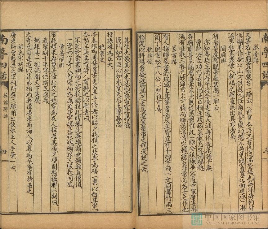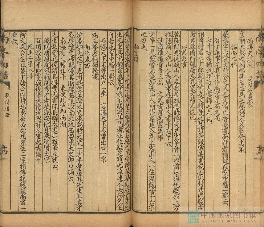清·李伯元所撰“庄谐联话”是《兰亭四话》中的一话,主要记录了清代的人物轶事,是一本重要的笔记史料,内容生动、别致有趣,可作为春节茶余饭后的“悦”读。此次线上展览,我们撷取了“庄谐联话”中的一卷,以飨读者。