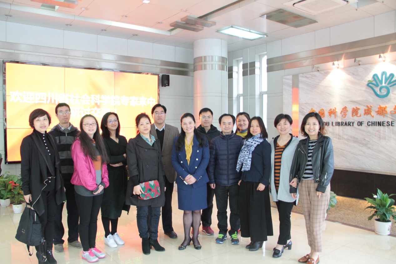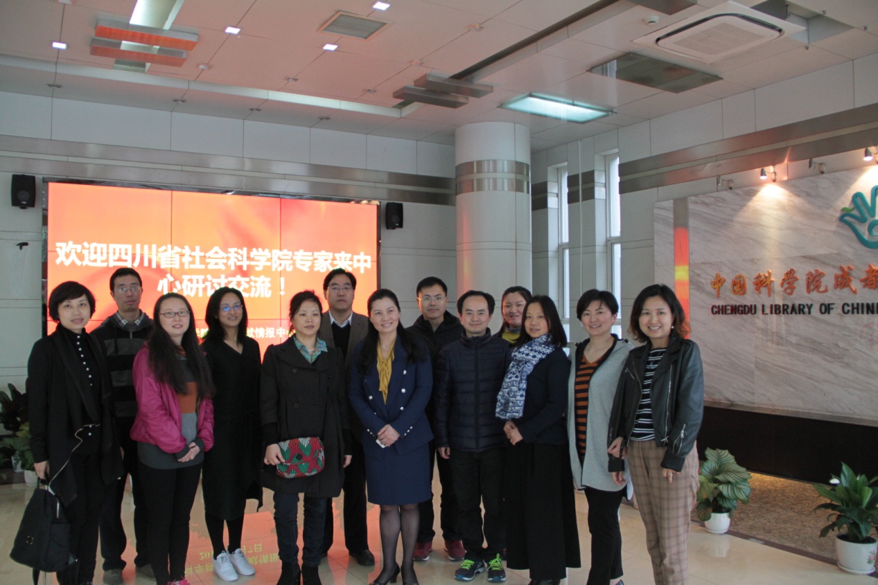 4月7日下午,四川省社会科学院经济研究所、产业经济研究所、管理学研究所、社会学研究所、文学研究所、法学研究所、民族与宗教研究所、新闻传播研究所的12位专家,在经济研究所方茜副所长的带领下到访中科院成都文献情报中心,就新型智库建设做访问交流。中心主任张志强主持座谈会议,科技处处长房俊民、情报研究部副主任陈云伟、唐川等参加了座谈。