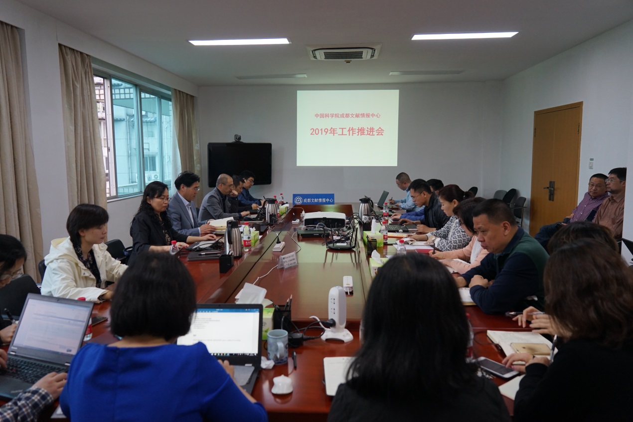 2019年4月10日上午,成都文献情报中心召开所务扩大会议,议题是推进2019年度工作计划,主要内容是汇报第一季度工作进展和工作亮点、签订2019年部门工作任务书、部署2019年“十三五”规划专项项目与主任基金项目。中心领导班子成员、各部门与团队负责人及研究员等二十余人参加了会议?;嵋橛芍行闹魅握胖厩恐鞒?。