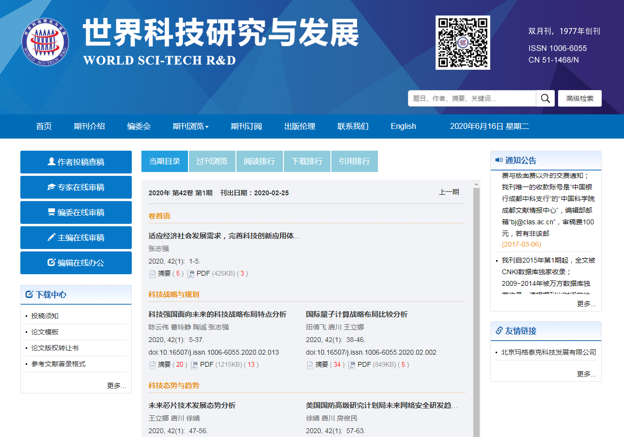 《世界科技研究与发展》期刊官网全新改版上线运行