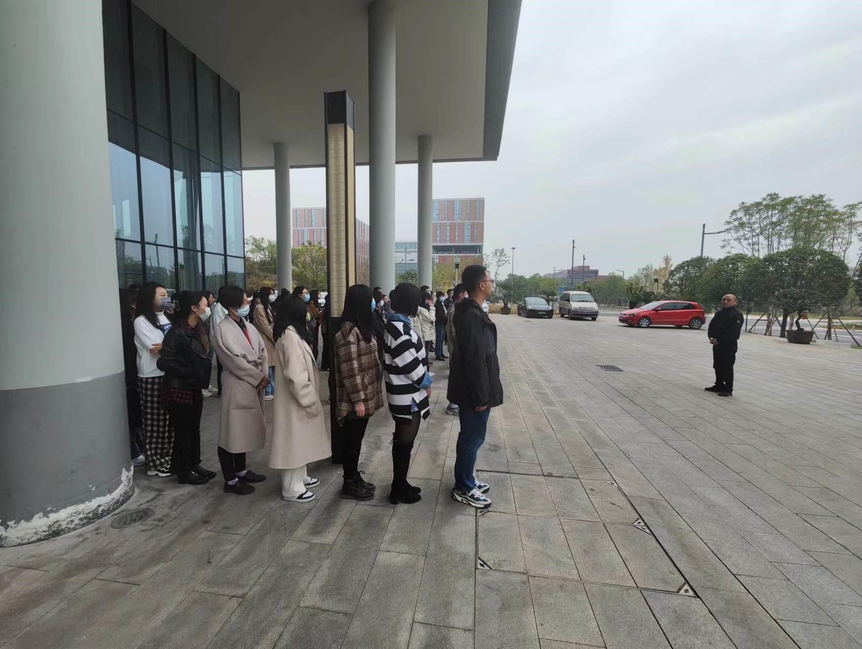 在消防安全疏散演练中,随着消防广播烟感报警器的报警,全体职工迅速做出应急反应,按照安全预案及时向“119、120”报告险情,关闭电源,安全员和物业人员第一时间引导职工、学生按消防分区通过消防通道有序撤离疏散。