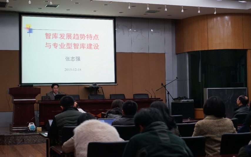 12月18日下午,中科院成都文献情报中心主任张志强在中心学术报告厅向中心全体职工和研究生做题为“智库发展趋势特点与专业型科技智库建设”的专题学术报告。