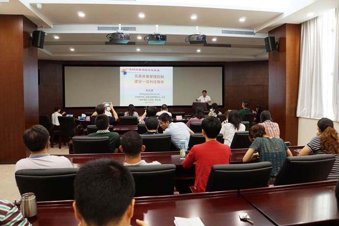 2017年6月27日,中国科学院成都文献情报中心主任张志强研究员受广东省科技图书馆(广东省科技信息与发展战略研究院)邀请,在广东省科技图书馆作了题为《完善质量管理机制,建设一流科技智库》特邀学术报告。广东省科技图书馆全体中层干部、学术委员会委员以及相关研究与服务部门人员等近50人参加学术报告会?;嵋橛晒愣】萍纪际楣莨莩の憾鞒?。