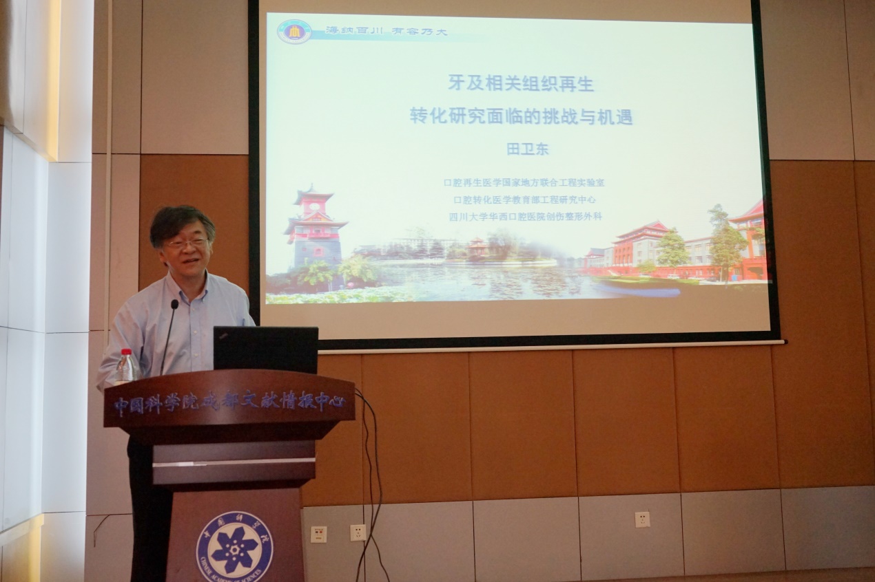 四川大学华西口腔医学院田卫东教授做了《牙及相关组织再生转化研究面临的挑战与机遇》的学术报告,介绍了其牵头的国家重点研发计划“干细胞与转化医学重点专项”项目“基于成体/多能干细胞的牙功能组织??楣菇白芯俊钡淖芴迩榭黾案上赴俅仓瘟泼媪俚奈侍饧疤粽?。田卫东以临床医生的身份强调,国际上干细胞技术正飞速发展,研究重点向临床应用与产业化转移,临床治疗将出现颠覆性革新,建议项目集成的信息应覆盖干细胞基础研究、临床转化到产业化全过程,加大对干细胞临床信息的采集,如干细胞临床试验数据、药品、政策法规等。