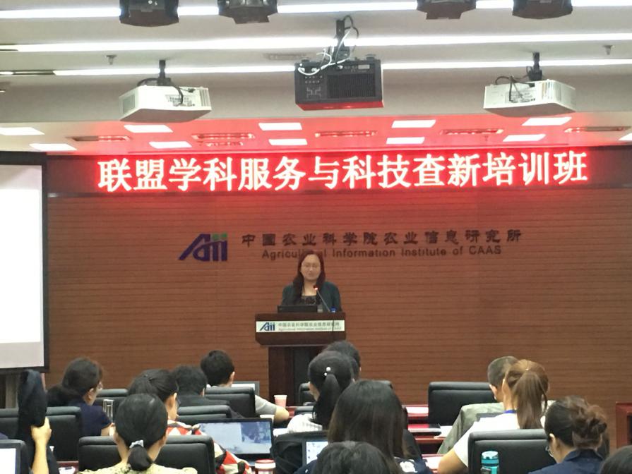 受中国农业科学院农业信息研究所邀请,9月18日成都文献情报中心副主任杨志萍和学科咨询服务部副主任陆颖参加了由全球农业大数据与信息服务联盟主办、中国农业科学院农业信息研究所承办的“2018联盟学科服务与科技查新培训班“,杨志萍做了”中国科学院学科化服务支撑科研一线发展“的报告。中国农业科学院农业信息研究所副所长周国民、学科咨询服务部主任魏虹斌,以及农科院及其联盟信息咨询相关人员约40余人参加活动。