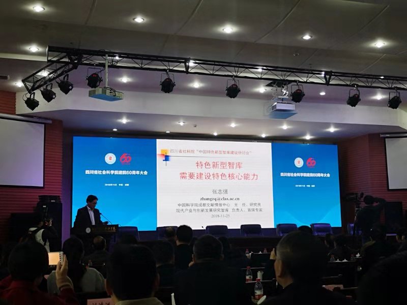 在中国特色新型智库建设研讨会环节,邀请智库界6位专家做大会主旨发言和报告交流。中国科学院成都文献情报中心主任张志强研究员应邀作了题为《特色新型智库需要建设特色核心能力》大会主旨报告。