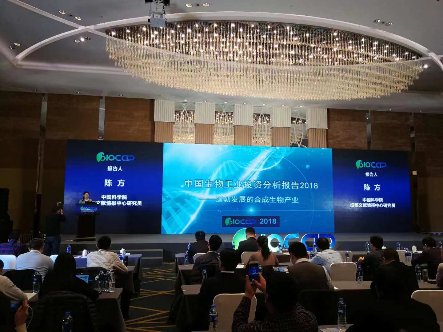 2018年18-20日,第三届中国生物工业投资大会在天津顺利召开,中国科学院成都文献情报中心研究员陈方代表报告研究组在会议现场发布了《中国生物工业投资分析报告2018》,引起了与会专家、代表和媒体的关注。