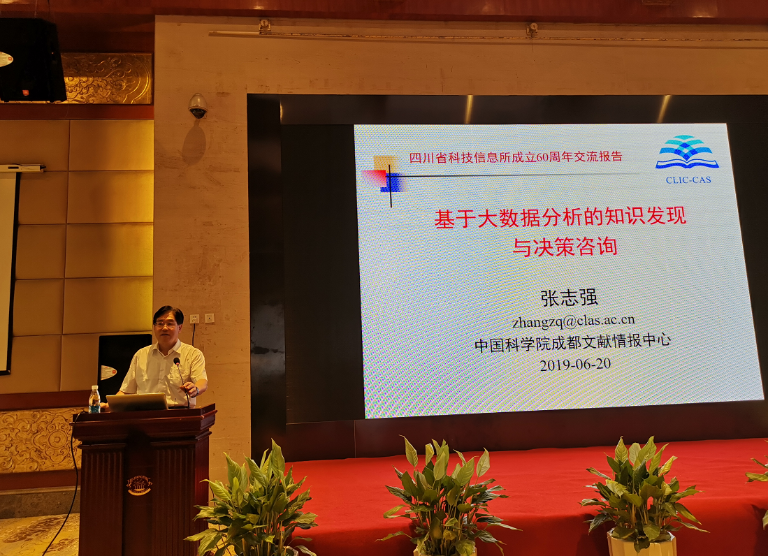 6月20日,由四川省科技情报学会和四川省科学技术信息研究所主办的“四川省科技情报行业发展60周年座谈会”在成都举行,中国科学院成都文献情报中心主任张志强研究员应邀参加座谈会,作了题为《基于大数据分析的知识发现与决策咨询》的主题报告。四川省科学技术厅田云辉副厅长、中国科学技术信息研究所戴国强所长等参加座谈会。来自四川、陕西、贵州、西藏等省区科技信息研究所,以及四川省内行业情报所、各地州市情报所以及四川省有关高校图书馆等负责人近80人参加会议。四川省科学技术信息研究所纪委书记郭林原主持会议。
