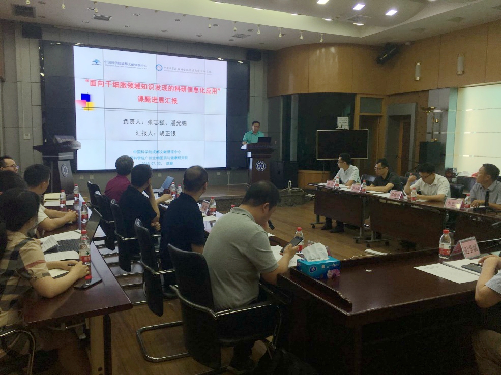 7月2日,中科院“十三五”信息化专项项目组在成都组织专家对中科院成都文献情报中心(简称“成都文献中心”)和中科院广州生物医药与健康研究院(简称“广州健康院”)共同承担的专项课题“面向干细胞领域知识发现的科研信息化应用”进行了中期评估检查。评估专家组由来自中科院计算技术研究所、中科院数学与系统科学研究院、电子科技大学、四川大学华西口腔医院、西南交通大学等单位的5位专家组成。中科院计算机网络信息中心副主任、专项项目组长迟学斌研究员等参加会议?;嵋橛芍锌圃撼啥嘉南浊楸ㄖ行闹魅?、课题负责人张志强主持。