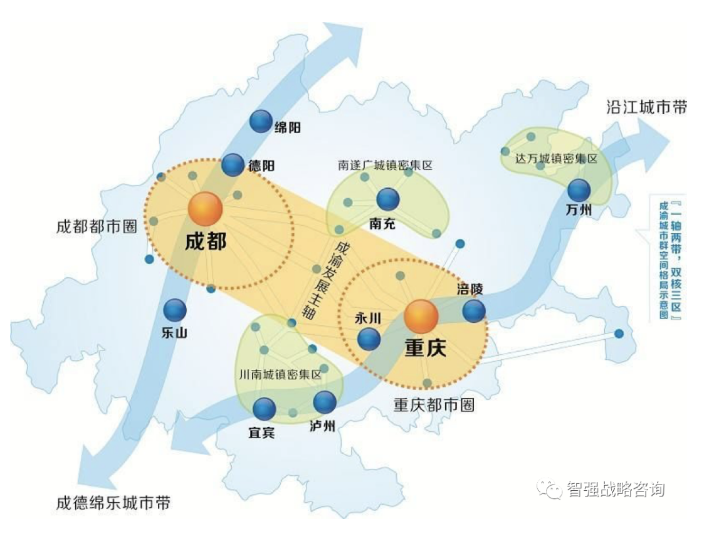 图2 成渝经济圈成渝主轴两翼的战略性二级节点支撑城市