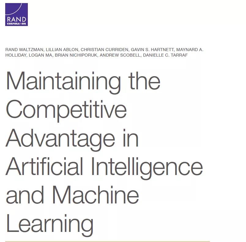 2020年7月8日,美国智库兰德公司发布报告《在人工智能和机器学习领域保持竞争优势》(Maintaining the Competitive Advantage in Artificial Intelligence and Machine Learning)。该报告是受美国空军委托完成的,旨在比较美国与中国在人工智能和机器学习领域的竞争态势,报告比较分析了中美两国的人工智能生态系统,评估了中美两国在人工智能领域的竞争力,提出了美国空军维持人工智能优势的若干建议。