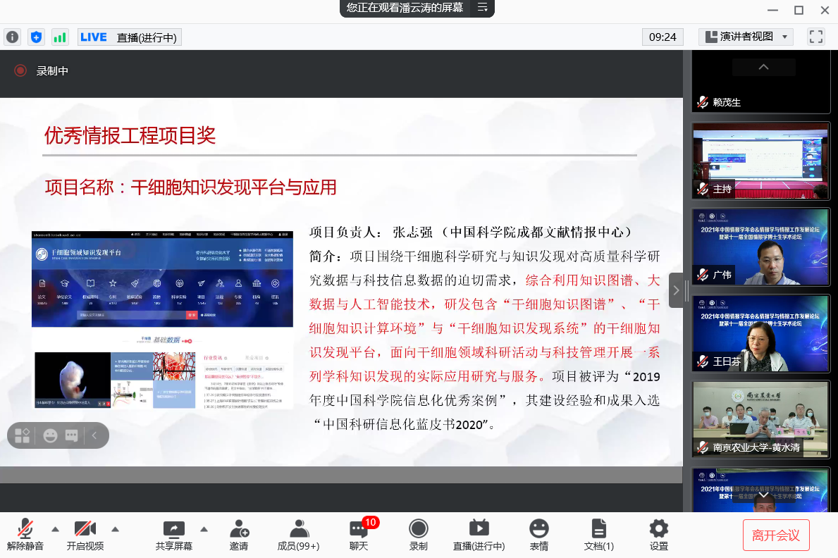 “干细胞知识发现平台与应用”被评为第三届优秀情报工程项目奖