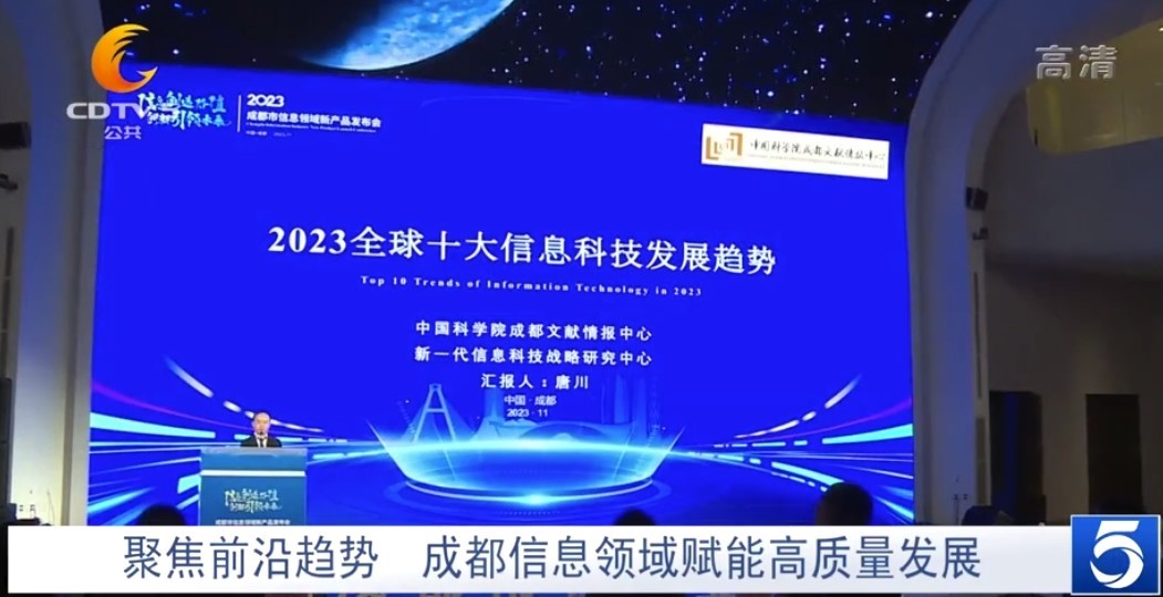 会上,中国科学院成都文献情报中心战略情报部副主任、新一代信息科技战略研究中心主任唐川发布了《2023全球十大信息科技发展趋势》报告,介绍了大模型、具身智能、AI for Science、RISC-V、集成电路、脑机接口、元宇宙、网络通信、算力、数字化等方面的重要发展趋势,引起了与会专家、企业和媒体的关注。