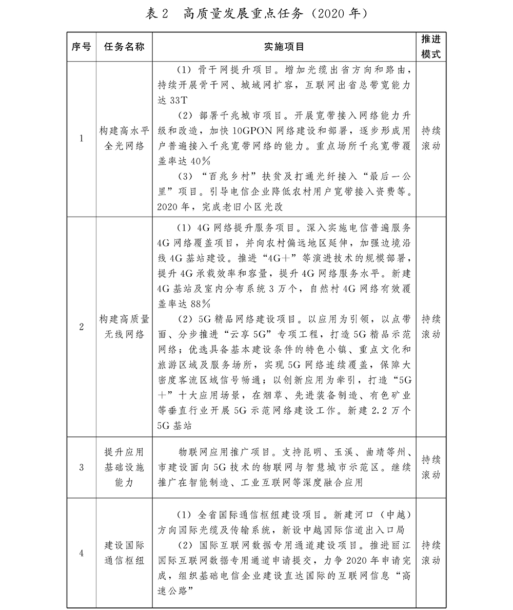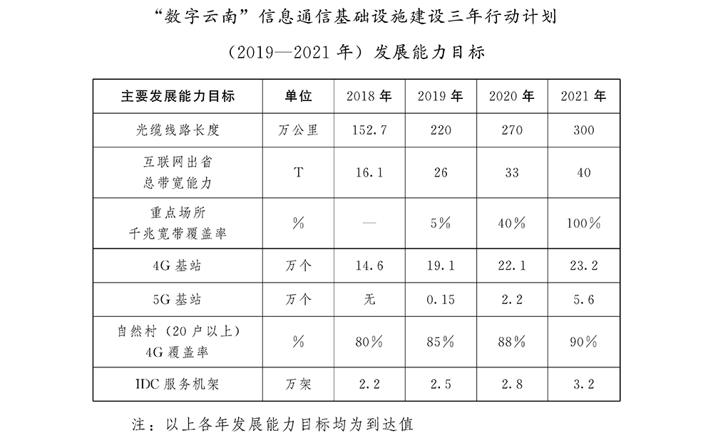 “数字云南”信息通信基础设施建设三年行动计划(2019—2021年)
