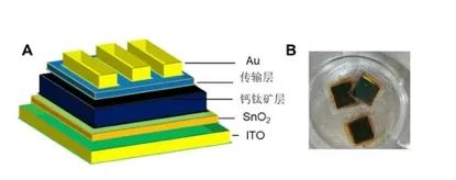 钙钛矿太阳能电池的结构(A)和实物(B)