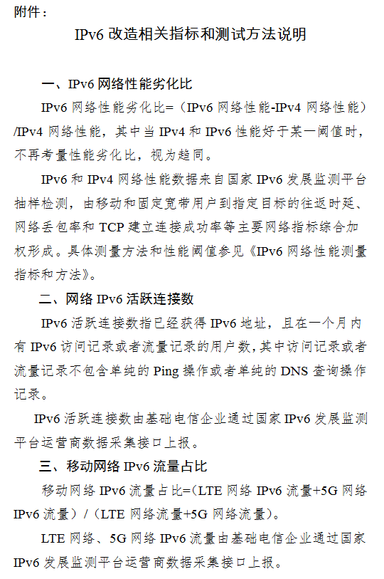 附件:IPv6改造相关指标和测试方法说明