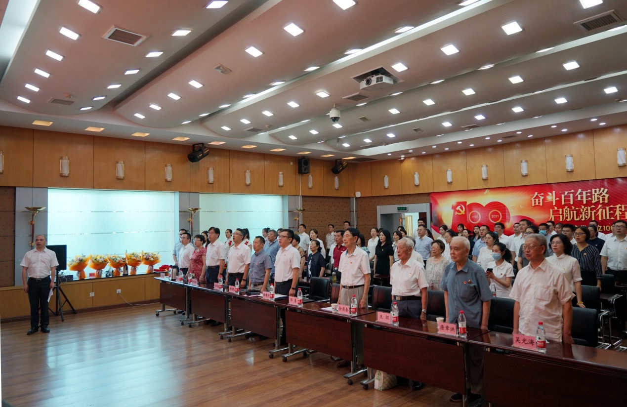为隆重庆祝中国共产党成立100周年,6月29日,中科院成都文献情报中心召开“奋斗百年路 启航新征程”庆祝中国共产党成立100周年党员大会。中心党政领导班子成员、全体在职党员、离退休党员代表及学生党员共80余人欢聚一堂,共同庆祝这一历史性的时刻!中心主任、党委副书记邓勇主持大会。
