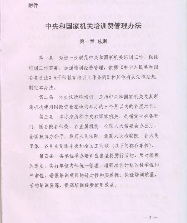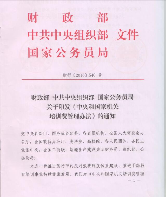财政部 中共中央组织部 国家公务员局关于印发《中央和国家机关培训费管理办法》的通知 来源: 发布时间: 2018年02月12日 附件下载: 分享: 上一条:公告——“你读书 我买单” 2017年3月外文图书展抽... 下一条:落实《若干意见》典型案例之七 中科院水生所:实施...