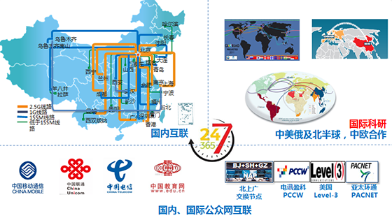 2、拥有独立、高速的国际互联网出口,满足用户高速访问国际科研资源的需求。中国科技云拥有多条高速国际科研出口,可以为科研用户提供大带宽、高网速科研传输服务,组织和推动多学科交叉的科研资源共享。