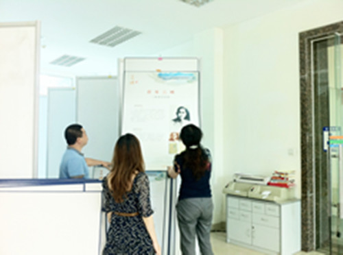 信息服务部主任鄢小燕、副主任任波等带领部门工作人员认真布展,根据展板的规格,耐心地尽力将展板调整到了参观者方便悦目的高度。展板刚刚布置好,馆内各个部门的不少工作人员和一些研究生便前来观看。