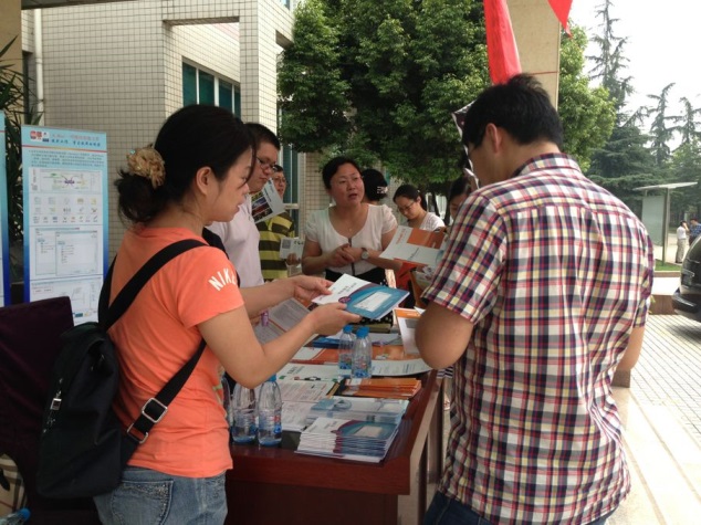 活动当天烈日炎炎,工作人员们的服务热情以及科研工作者的求知欲却一点也没有被烈日击退。在光电所信息中心协同下,陈力、梁田、许文娟、杨斌等几位工作人员为来往的科研人员介绍了我馆的信息资源与服务,包括“馆际互借与原文传递”服务和数据库资源等。科研工作者们还针对所需的数据库提出了许多具体问题,均得到细致专业的答复。光电所的科研工作者们表示这样近距离的直接沟通很好,解答了他们很多疑问,不少人临走时还抱走许多宣传资料,表示回去后会继续仔细研读。